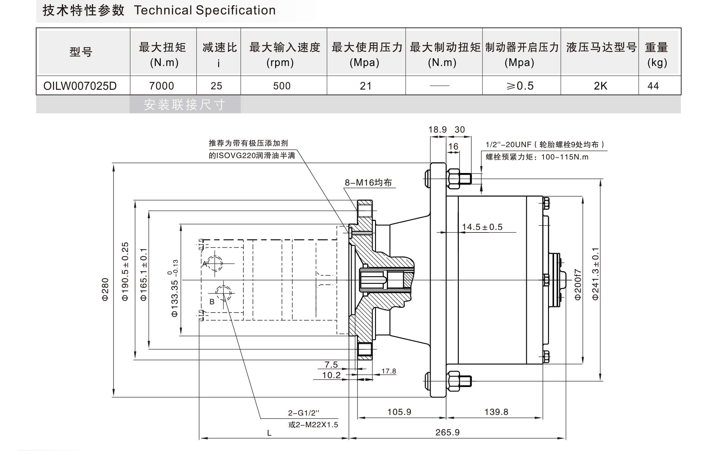 OILW060*TB![]() | 60000 | 86.5 94.8 105.5 119.8 139.9 169.9 | 1450 | 25 | 800 | ≥1.8 | A2FE107/125--Z | 260 |